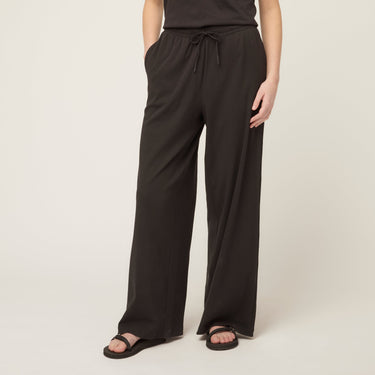 A relaxed pull-on pant designed for days that don’t slow down. The wide leg drapes cleanly while an elastic waistband with drawcord adjusts to your comfort, so you can fine-tune the fit from first wear. The ribbed knit feels cool and soft against the skin, with built-in stretch that moves easily through commutes, long walks, and everything in between. Two side seam pockets keep small essentials close, and the easy-care finish makes it easy to wear on repeat.