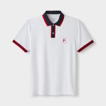 Twice-treated, ultralight weight jersey increases moisture wicking ability and features a printed logo on the chest with striped details to give this high stylish performance polo on and off the course comfort.